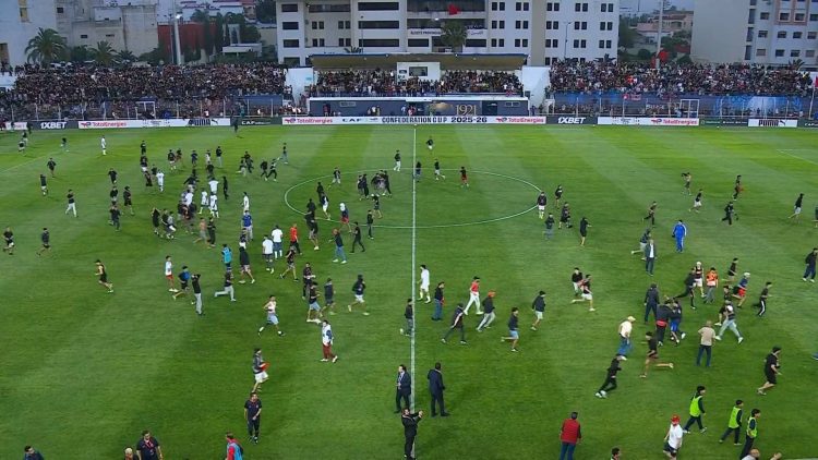 تجاوزت هذه الأحداث حدود الشغب الجماهيري لتتحول إلى خروقات قانونية وتنظيمية صارخة داخل أرضية الميدان، حيث وثقت المشاهد المرعبة اعتداءات مباشرة استهدفت اللاعبين والأنصار على حد سواء، تزامنت مع اختراق فاضح لقوانين الاتحاد الإفريقي عبر السماح بتواجد جماهير أولمبيك آسفي خلف مرمى حارس اتحاد الجزائر بغرض الترهيب، فضلاً عن إقحام الشعارات السياسية عبر لوحات إشهارية داخل الملعب في تحدٍ سافر للوائح القارية التي تمنع استغلال الرياضة في أغراض غير كروية.