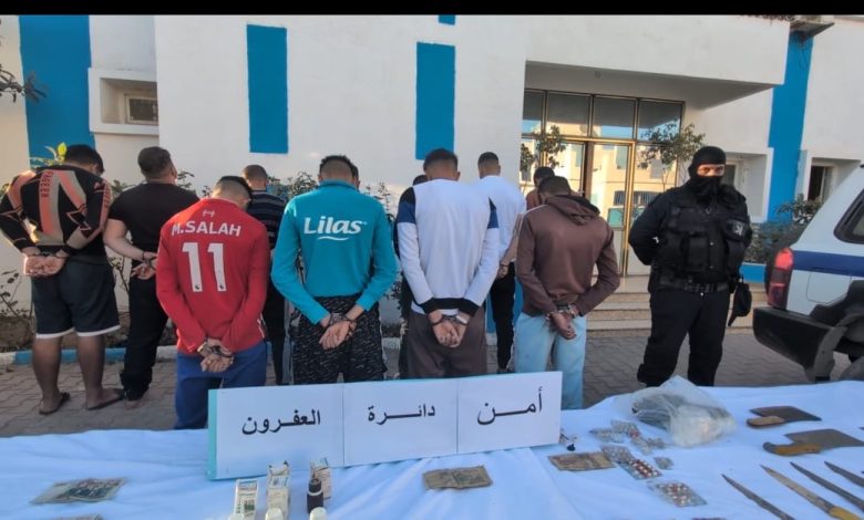 وأسفرت هذه العمليات أيضًا عن ضبط مجموعة من الوسائل المستخدمة في الأنشطة الإجرامية، شملت 13 سلاحًا أبيض من مختلف الأحجام والأنواع، 5 قارورات محلول مؤثر عقلي، أقراص من المؤثرات العقلية، قنب هندي، بالإضافة إلى مبالغ مالية من عائدات الترويج، وقد تم إعداد ملفات قضائية في حق جميع المشتبه فيهم وتقديمهم أمام نيابة محكمة العفرون، بتهم مختلفة منها تكوين شبكات لعصابات الأحياء.