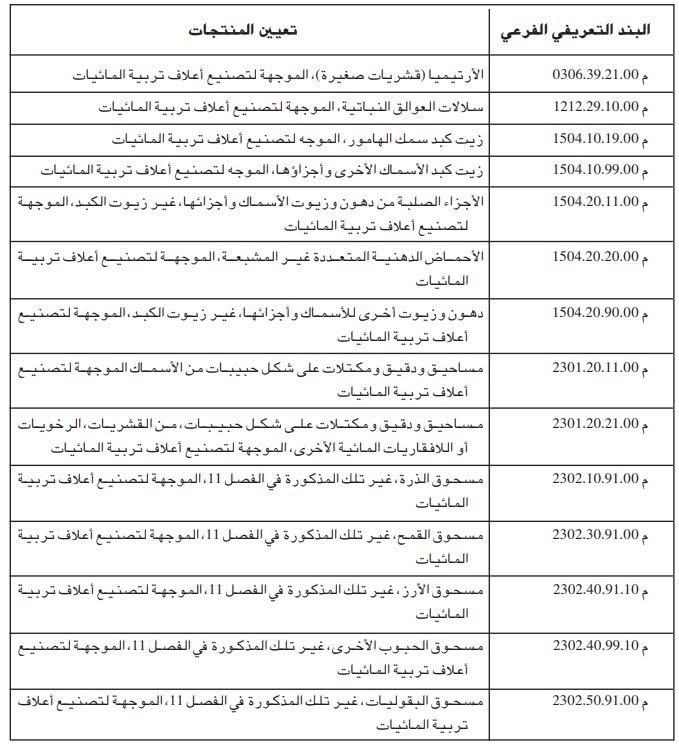 ومن المتوقع أن يسهم هذا الإجراء في زيادة مردودية شعبة تربية المائيات، خلق فرص عمل جديدة، وضمان تموين منتظم للسوق بمنتجات تربية المائيات، بما يعزز الفائدة على المنتجين والمستهلكين ويدعم الاقتصاد الوطني، وفيما يلي قائمة المواد المعنية بهذا الإجراء.