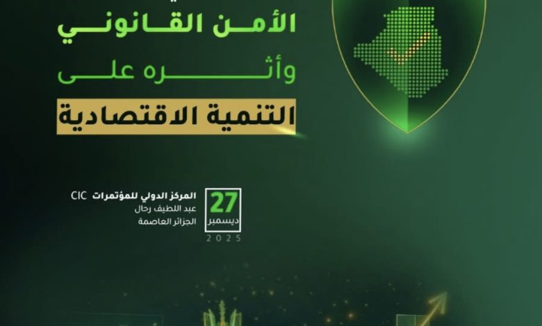 تنظم وزارة العدل، تحت الرعاية السامية لرئيس الجمهورية السيد عبد المجيد تبون، وبالتنسيق مع منظمة محامي الجزائر والاتحاد الوطني للمقاولين العموميين ومجلس التجديد الاقتصادي الجزائري، ملتقى وطنيًا بعنوان ” الأمن القانوني وأثره على التنمية الاقتصادية”، وذلك يوم السبت 27 ديسمبر 2025، بالمركز الدولي للمؤتمرات عبد اللطيف رحال بالجزائر العاصمة.