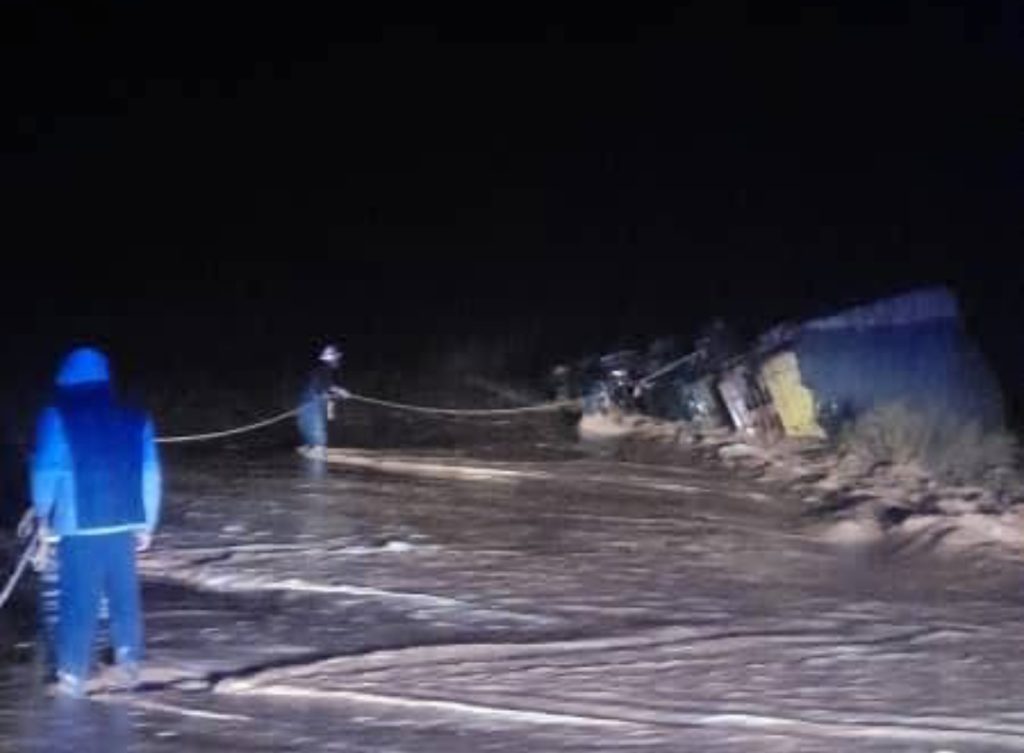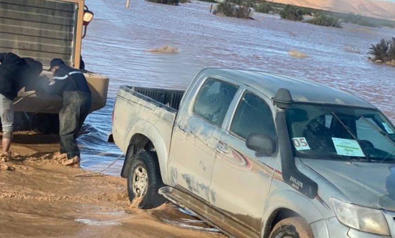 و في ولاية بني عباس، ببلدية تبلبالة، أنقذت الفرق 06 أشخاص كانوا على متن 04 شاحنات ورافعة وسيارة نفعية بوادي الدورة، من بينهم شخصان تم إسعافهما ونقلهما إلى المستشفى المحلي بسبب الإرهاق، فيما لا تزال عملية إخراج الشاحنات والرافعة متواصلة.