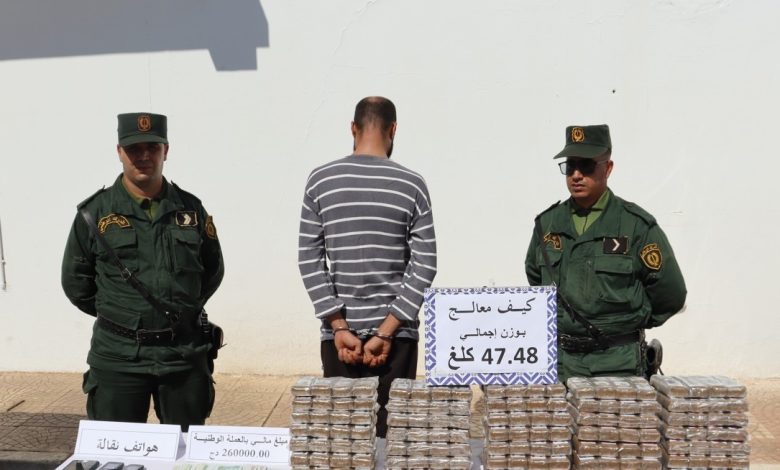 مواصلة للبحث والتحري -يضيف البيان نفسه-مكنت العملية من التعرف على باقي عناصر الشبكة المكونة من 03 أفراد، لا يزال إثنان منهم في حالة فرار، حيث أسفرت العملية عن توقيف سائق المركبة مع حجز كمية معتبرة من الكيف المعالج قدرت كميتها الإجمالية بأكثر من 47 كلغ، بالإضافة إلى مركبة نفعية بجميع وثائقها الإدارية ومبلغ مالي من عائدات ترويج المخدرات يقدر بحوالي 26 مليون سنتيم وهواتف نقالة.