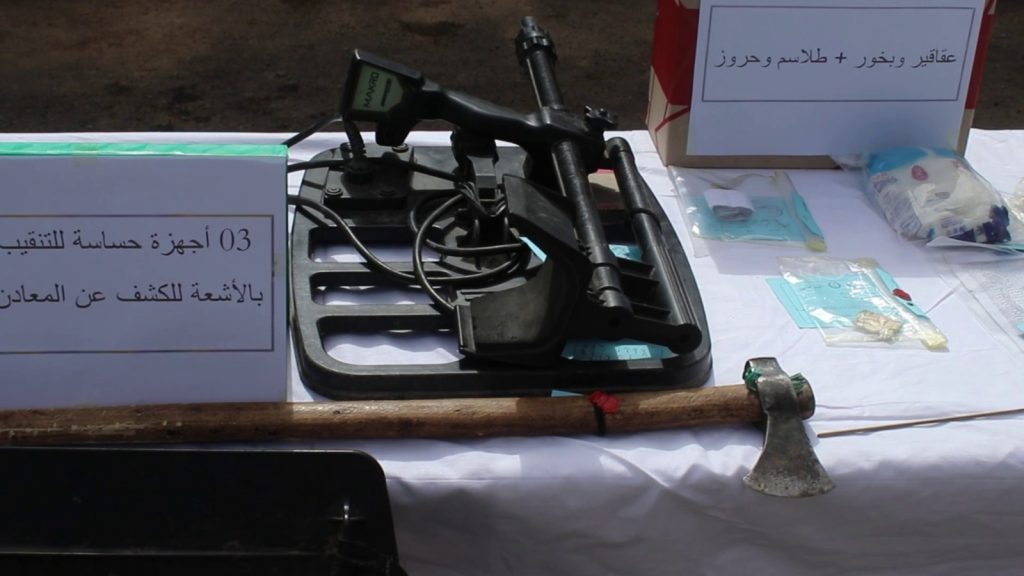 وحسب ما أورده بيان الدرك الوطني، العملية جاءت بناء على معلومات مؤكدة، أين باشر أفراد الفرقة الإقليمية للدرك الوطني ببوقايد التحقيق وتنشيط عنصر الإستعلامات، ليتم توقيف 05 أشخاص مشتبه فيهم ﻟﻘﻴﺎمهم ﺑﺄﺷﻐﺎﻝﺍﻟﺘﻨﻘﻴﺐ ﺃﻭ الاستكشاف ﺍﻟﻤﻨﺠﻤﻲ دون ترخيص، بالإضافة إلى حجز (02) جهازي تنقيب عن المعادن، جهاز مسح بالأشعة للكشف عن المعادن المدفونة، سلك نحاسي يسمى سيخ يستعمل للكشف التقليدي عن المعادن، ميزان يدوي إلكتروني، عقاقير وبخور، طلاسم وحروز شاحن لبطاريات جهاز المسح، 02 بطاريات خاصة بأجهزة الكشف  بقوة 14.8 فولط، مركبة سياحية، كماشتين)02( وورقة مدون عليها المسلك المتبع للوصول إلى الكنـز المدفون مكتوب بخط اليد.