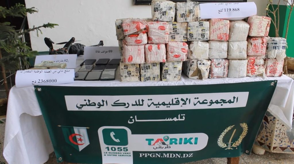 نجحت وحدات الدرك الوطني بتلمسان في عمليات متفرقة من تفكيك شبكة إجرامية منظمة تقوم بتهريب المخدرات من المغرب إلى داخل التراب الوطني، حيث تم حجز خلال هذه العمليات ما يقارب (01) قنطار و (20) كلغ من الكيف المعالج وتوقيف (06) ستة أشخاص بحوزتهم مبلغ مالي من عائدات هذا النشاط الإجرامي يزيد عن (236) مليون سنتيم، و(09) تسعة هواتف نقالة و(02) طائرتين بدون طيار “درون”، بالإضافة إلى سيارة نفعية.