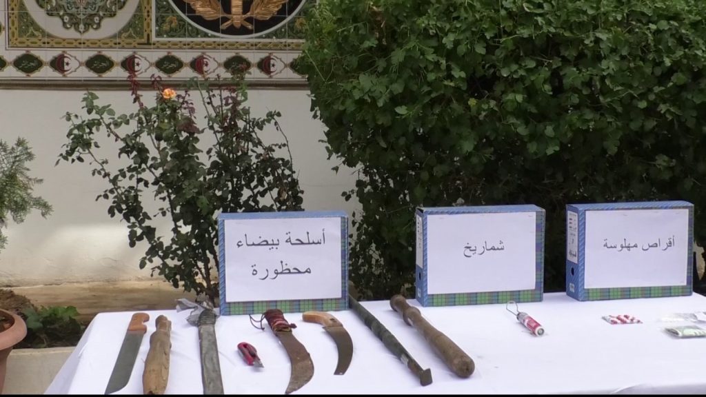 وعقب تنشيط عنصر الاستعلامات-يضيف المصدر نفسه- وضعت فرقة الدرك الوطني بزونكا خطة أمنية محكمة، انتهت بمداهمة مساكن المشتبه فيهم، حيث أسفرت العملية عن توقيف خمسة أشخاص متورطين، إلى جانب حجز ثلاثة سيوف كبيرة الحجم، شماريخ، عصا بيسبول، منشار بمقبض خشبي، عصا حديدية، وأقراص مهلوسة.
