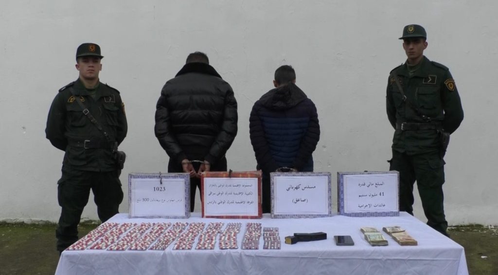 أما العملية الثانية-وفق ذات المصدر- فقد عالجتها الفرقة الإقليمية للدرك الوطني بالرايس، بناءً على معلومات حول قيام شخصين بترويج المخدرات بأحياء بلدية سيدي موسى. وأسفرت الخطة الأمنية المحكمة عن توقيف 3 أشخاص وحجز 1023 قرص مهلوس من نوع بريغابالين، ومبلغ مالي من العائدات الإجرامية قدره 41 مليون سنتيم، وصاعق كهربائي.