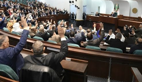 صادق نواب وأعضاء البرلمان بغرفتيه، اليوم الأربعاء، على مشروع القانون المتضمن التعديل الدستوري، بقصر الأمم، بالجزائر العاصمة.