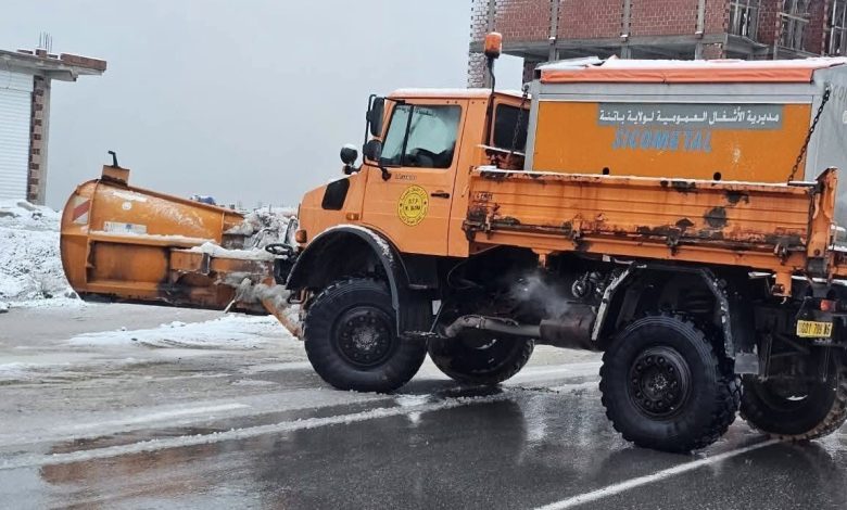 وفي ولاية باتنة، تواصلت عمليات إزالة الثلوج وفتح الطرقات عبر شبكة واسعة من المحاور الوطنية والولائية، باستخدام ثماني كاسحات للثلوج. وقد تم فتح نحو 95 بالمائة من الطرق، خاصة الطرق الوطنية رقم 31 و77 و87، مع الشروع في إعادة فتح الطرق الولائية، إضافة إلى معالجة تجمعات المياه على الطريق الوطني رقم 88.
