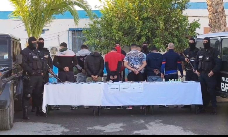 ووفقًا للمعطيات المتحصل عليها، تم خلال هذه المداهمة تنفيذ أذونات تفتيش وأوامر بالقبض صادرة عن النيابة المختصة، ما مكّن من إيقاف اثني عشر (12) شخصًا. كما تم ضبط كمية من المخدرات، وأقراص مهلوسة، إضافة إلى أسلحة بيضاء من مختلف الأحجام والأنواع كانت تُستعمل في الاعتداءات، إلى جانب مبالغ مالية يُشتبه أنها من عائدات الترويج.