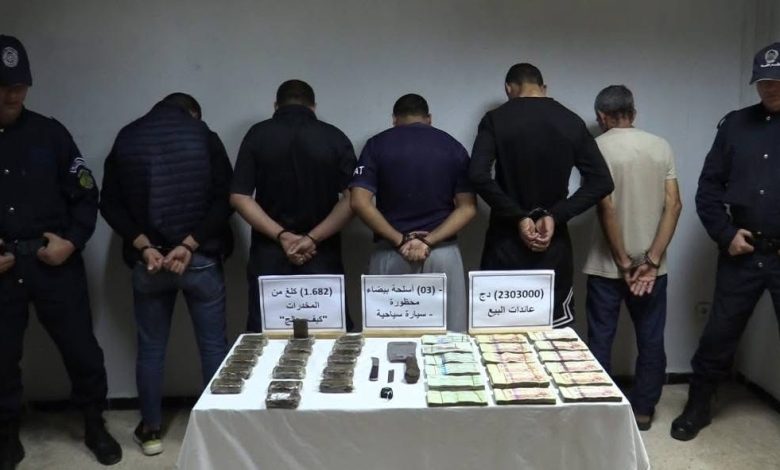 وحسب ما أورده بيان شرطة العاصمة، فقد عالجت المقاطعة الثانية للشرطة القضائية باب الزوار، القضية الأولى التي انطلقت بالتحريات استنادًا إلى معلومة أمنية مؤكدة حول نشاط شبكة إجرامية تنشط في المتاجرة بالمخدرات، حيث أسفرت العمليات الميدانية المدعّمة بأذون تفتيش عن توقيف خمسة (05) مشتبه فيهم وحجز 1.682 كلغ من الكيف المعالج، إضافة إلى ثلاث (03) أسلحة بيضاء محظورة، ومبلغ مالي قدره 230 مليون و300 ألف سنتيم، فضلاً عن سيارة سياحية.