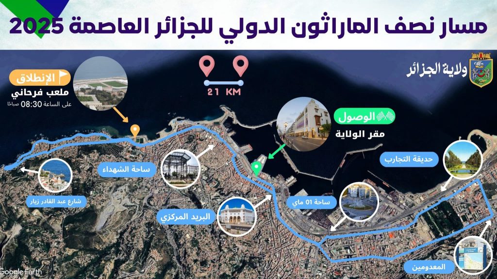 في إطار تنظيم نصف الماراثون الدولي للجزائر العاصمة، المقرر يوم غدٍ الجمعة 14 نوفمبر، أعلنت ولاية الجزائر عن غلق مؤقت وجزئي لحركة المرور على طول مسافة 21 كلم تغطي مسار السباق، والذي سيشارك فيه نحو 6000 عداء وعداءة من 24 دولة بما فيهم الجزائر ، حيث سيتم الإنطلاق من ملعب فرحاني بلدية باب الوادي، حيث يمتد الأول على طول 10 كلم، فيما يمتد الثاني على طول 21 كلم، مرورا بالشوارع والأنهج الرئيسية للوصول إلى نقطة النهاية بنهج زيغوت يوسف أمام مقر ولاية الجزائر.