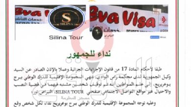 درك برج بوعريريج يوجه نداء للجمهور حول قضية النصب عبر صفحتي “SELINA TOUR” و ” النبراص تور”