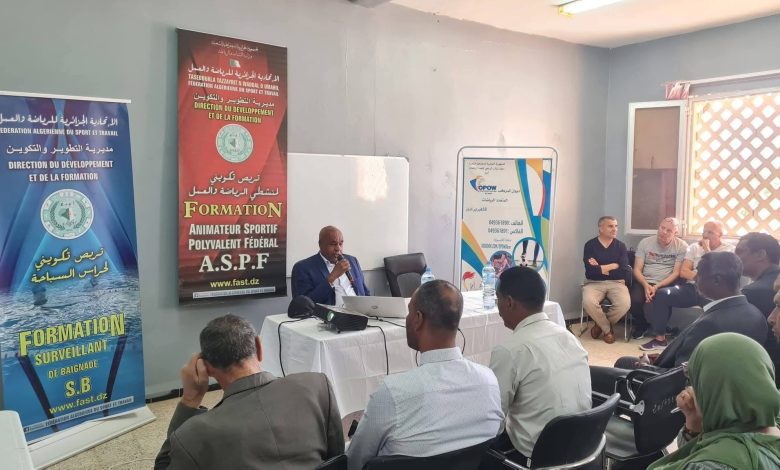 Cette session de formation, dont la cérémonie d’ouverture s’est déroulée au complexe sportif »18 février » à Adrar en présence des responsables locaux et représentants du secteur de la jeunesse et des sports ainsi que du secrétariat de wilaya de l’Union générale des travailleurs algériens (UGTA), s’inscrit dans le cadre du programme de la FAST visant à encourager les activités sportives en milieu professionnel, a affirmé le président de la ligue de wilaya du sport et travail, Abdeslam Zouini.
