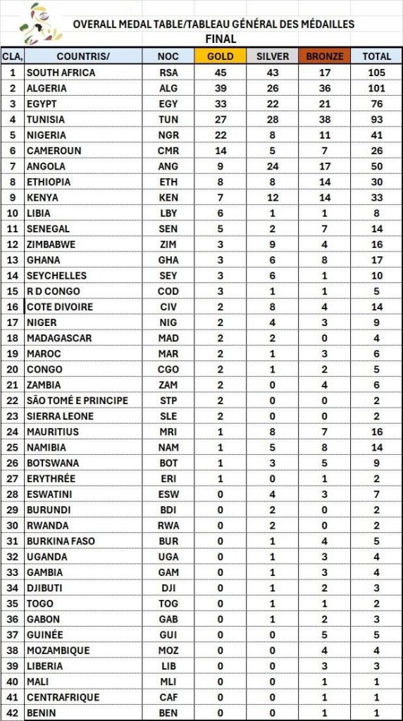 L’Algérie a décroché la deuxième place aux Jeux africains de la jeunesse (JAJ) des U17, organisés en République d’Angola, en remportant 101 médailles, indique, dimanche, un communiqué du ministère de l’Education nationale.