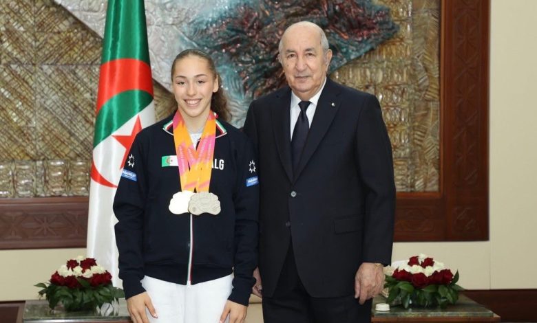 Le président de la République, M. Abdelmadjid Tebboune, a reçu, dimanche, la championne olympique et mondiale Kaylia Nemour, accompagnée de ses parents et du staff technique de la Fédération de gymnastique. L’audience s’est déroulée en présence du directeur de Cabinet à la Présidence de la République, M. Boualem Boualem, du ministre des Sports, M. Walid Sadi, et du conseiller du président de la République chargé de la Direction générale de la communication, M. Kamel Sidi Said.