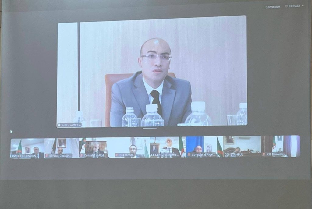 Le secrétaire d’Etat auprès du ministre des Affaires étrangères, chargé de la Communauté nationale à l’étranger, M. Sofiane Chaib, a tenu une réunion de coordination et d’orientation, par visioconférence, avec les chefs des postes consulaires en Europe et en Amérique, a indiqué mardi un communiqué du ministère des Affaires étrangères, de la Communauté nationale à l’étranger et des Affaires africaines. Cette rencontre, qui s’inscrit dans le cadre de la poursuite des réunions périodiques avec les chefs des postes consulaires à l’étranger, a été consacrée à « l’évaluation de l’avancement des préparatifs en cours, en vue d’assurer le retour au pays, des membres de la communauté nationale établie à l’étranger, à l’occasion de la saison estivale, dans les meilleures conditions », précise le communiqué. La réunion a permis, dans ce cadre, de « constater l’impact positif des mesures adoptées par les hautes autorités du pays au profit de nos concitoyens résidant à l’étranger, notamment celles relatives à la facilitation des procédures d’entrée au territoire national ». La rencontre a également été l’occasion d’évaluer « les efforts de notre réseau consulaire dans la mise en œuvre du plan d’action du ministère pour la modernisation et la numérisation du système consulaire, en vue d’offrir des prestations simplifiées, adaptées aux besoins de notre communauté à l’étranger, et garantissant des services administratifs de haute qualité », ajoute le communiqué. A cet égard, des instructions et des directives ont été données pour améliorer, en continu, la qualité des services consulaires fournis, en veillant à rester en contact permanent avec nos ressortissants et à renforcer leur attache à la mère patrie ».