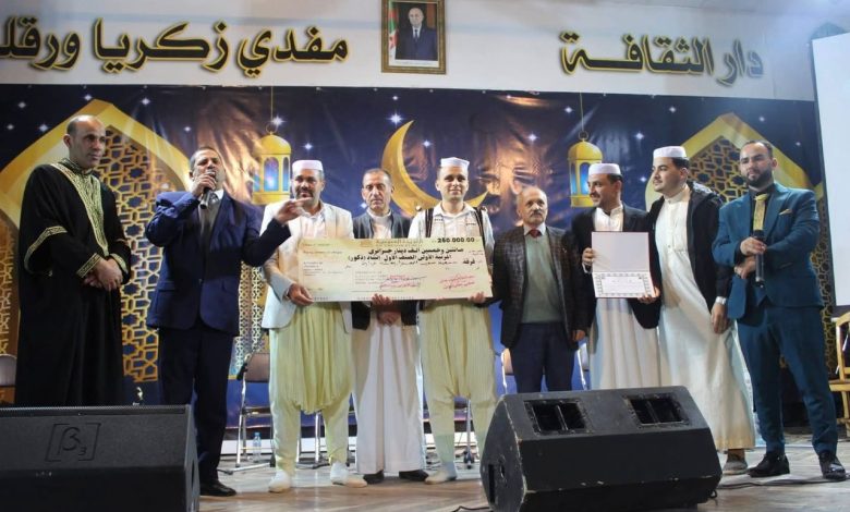 Le premier prix de la catégorie Inchad a été remporté par la troupe de l’association Saout El-Hazaz de la wilaya de Ghardaia, tandis que la troupe El-Ikhouane El-Kadiria (Ouargla) s’est distinguée dans la catégorie du Madih religieux traditionnel, selon les organisateurs.