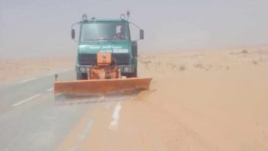 El Bayadh : opérations de dégagement du sable sur le réseau routier national après les tempêtes