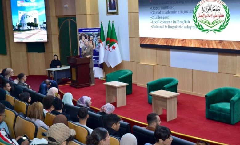 « Cette rencontre vise à encourager la recherche scientifique et la production intellectuelle des enseignants de la faculté, notamment à travers les livres et les articles scientifiques », a expliqué le responsable de la section « Anglais », Karim Belkaci et des étudiants internationaux à la même faculté.