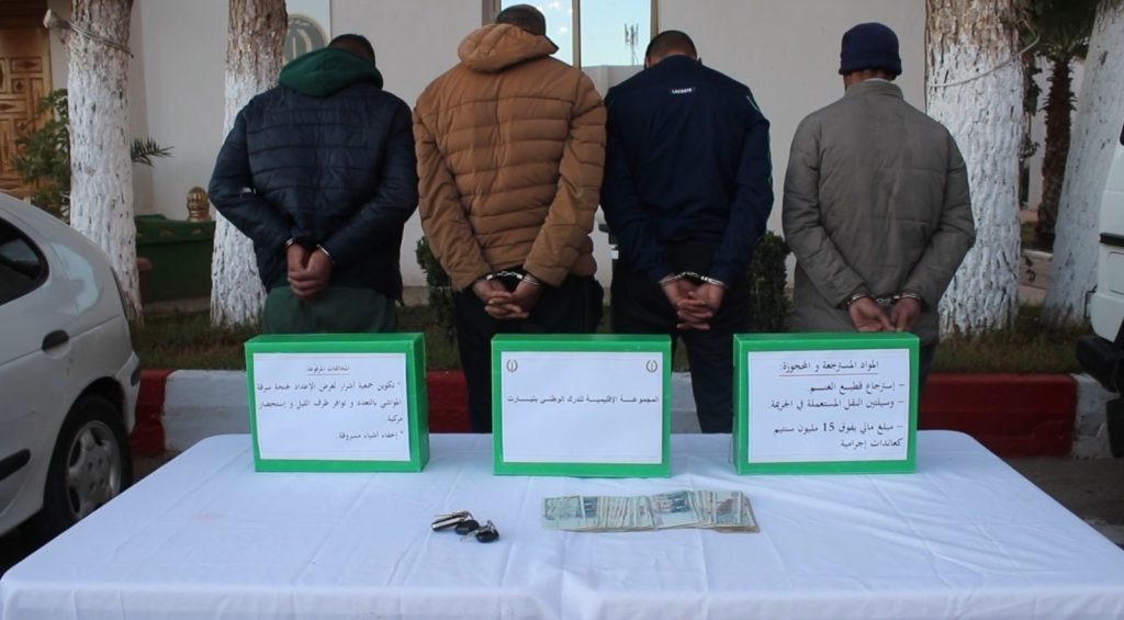 وعلى الفور -يضيف ذات المصدر – تم تفعيل وتطبيق مخطط الغلق المتعلق بمكافحة ظاهرة سرقة المواشي عبر الإقليم وبعد إتخاذ كافة الإجراءات وفي ظرف وجيز لا يتعدى 24 ساعة تمكن أفراد ذات الفرقة من إسترجاع القطيع. في حين تم توقيف 04 أشخاص مشتبه فيهم، منهم مسبوقين قضائيا في قضايا مماثلة كما تم حجز وسيلتي نقل استعملتا في الجريمة، ومبلغ مالي يفوق 15 مليون سنتيم كعائدات إجرامية.